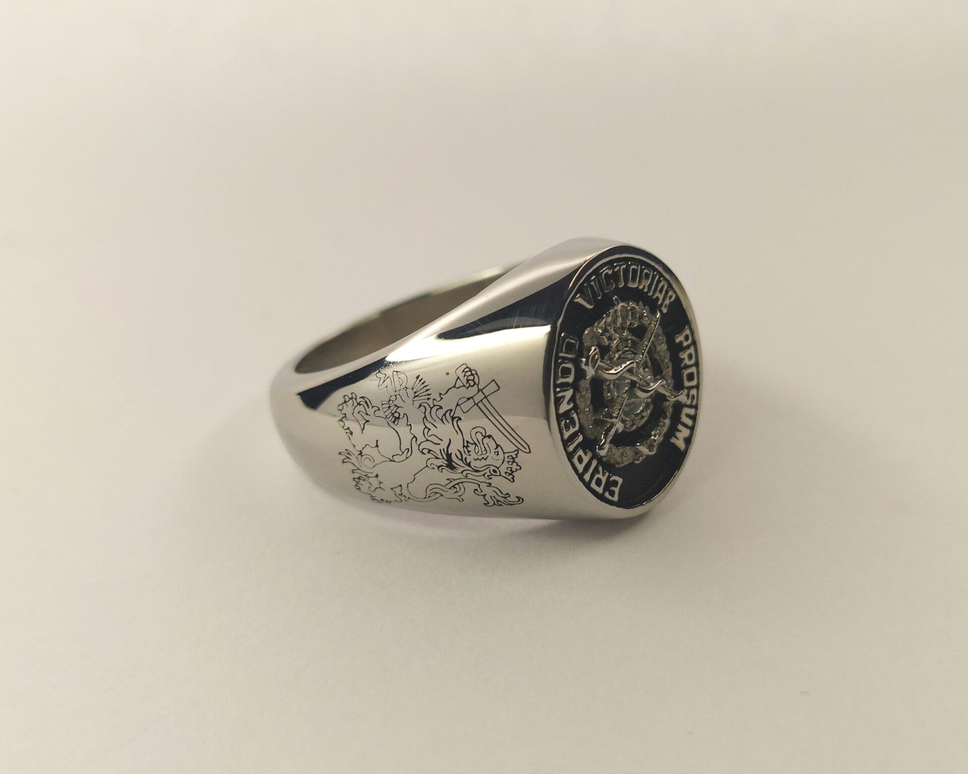 Het nieuwste model in de serie Honor-rings, type zegel-ring in high polished stainless steel is nu verkrijgbaar in de USA ring-maten 9 t/m 13